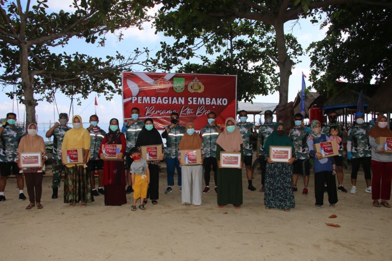 AriraNews.com, BATAM – Kapolresta Barelang Kombes Pol Yos Guntur, SIK bersama Forkopimda Kota Batam melaksanakan pembagian sembako dan tinjau pelaksanaan Serbuan Vaksinasi TNI-Polri yang diselenggarakan di Kampung Tua Pantai Nongsa, Kelurahan Sambau, Kecamatan Nongsa, Sabtu (28/8/2021).