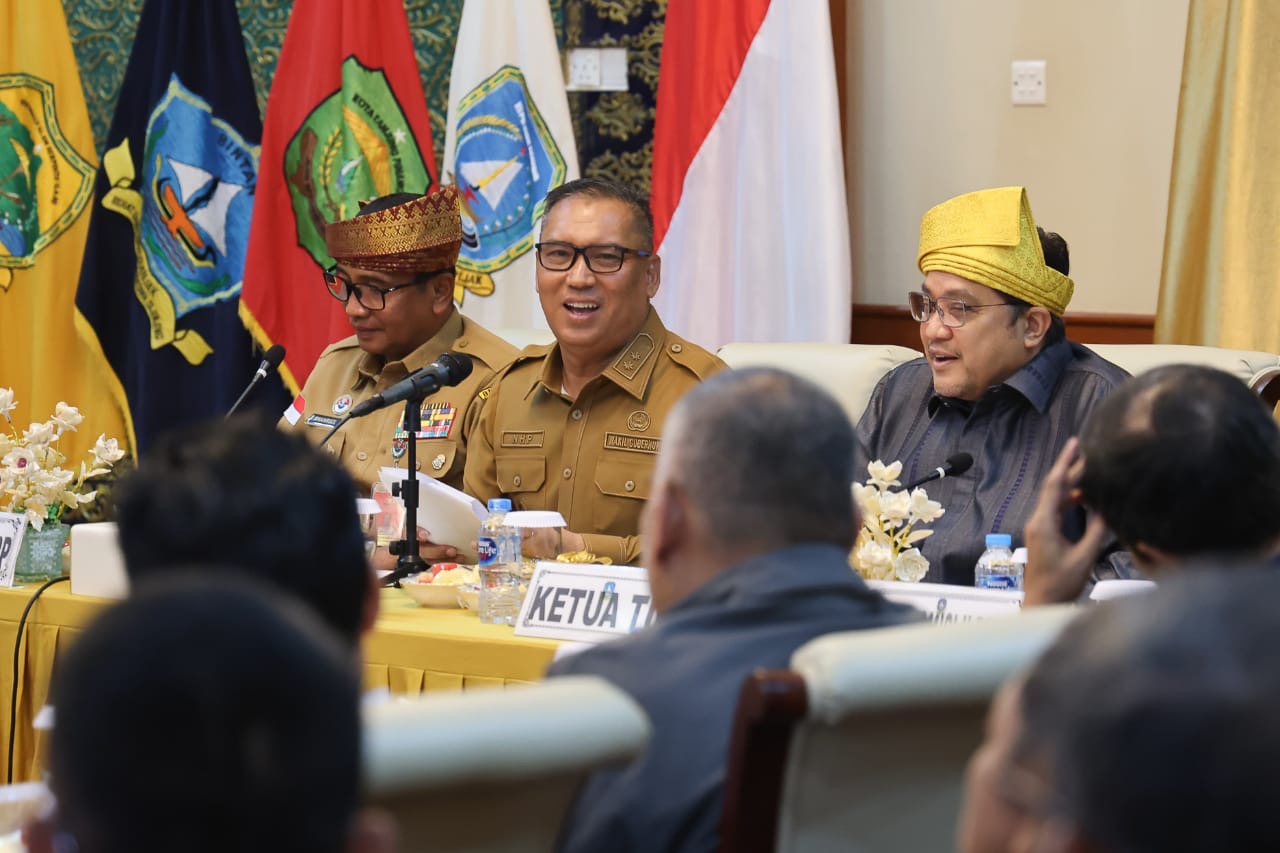 Ketua Tim Kunker Spesifik Komisi II DPR RI, Dede Yusuf, didampingi Wagub Kepri Nyanyang Haris Pratamura dan Wakil Ketua II DPR RI Bima Arya dalam dialog digelar di Gedung Daerah Tanjungpinang, Senin (29/9/2025). (Diskominfo Kepri)