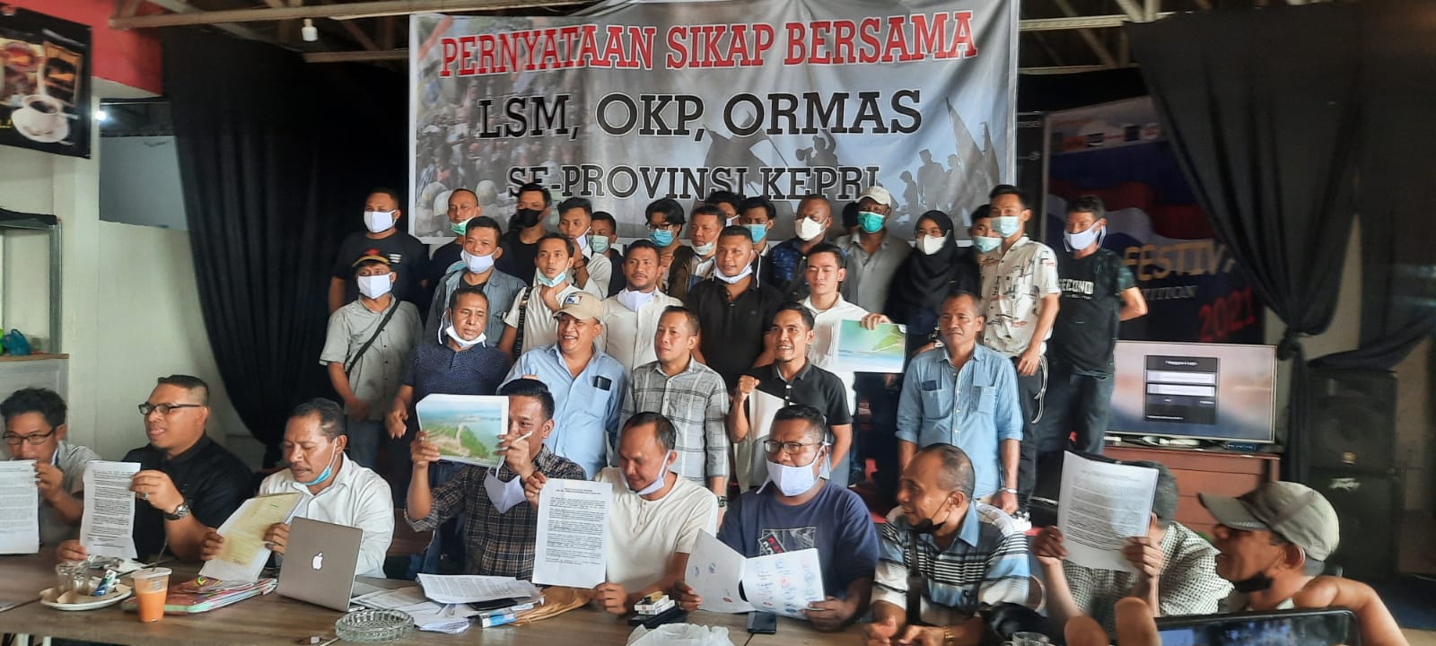 Konfrensi pers gabungan LSM, Ormas, dan OKP yang meminta Gubernur Kepri Keputusan Gubernur IUPJL PSWA pada hutan produksi Pulau Rempang.