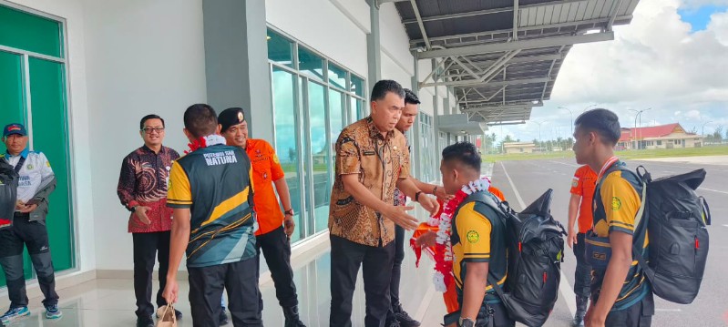 Bupati Natuna, Wan Siswandi sambut kedatangan Tim Potensi SAR Natuna yang mengikuti Jambore Potensi SAR Nasional 2023 yang telah terlaksana sejak tanggal 26 November di Cibubur, Jakarta.