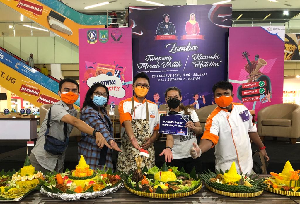 AriraNews.com, BATAM – HARRIS Resort Barelang Batam raih juara 2 dalam lomba Tumpeng Merah Putih yang digelar di Mall Botania 2 Batam, Minggu (29/8/2021). Acara ini diselenggarakan oleh PT Cakra Bramastra Internasional bersama Dinas Pariwisata Kepri dan Solidaritas Komunitas Pariwisata Kepri Peduli (Soko Pakdul) dan diikuti oleh 9 Grup yang terdiri dari 2 anggota yang dari setiap peserta berasal dari 9 hotel di Batam.