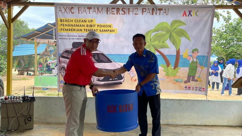 AXIC Batam Bersihkan Pantai Setokok, Tanam Pohon hingga Sumbangkan Puluhan Tong Sampah