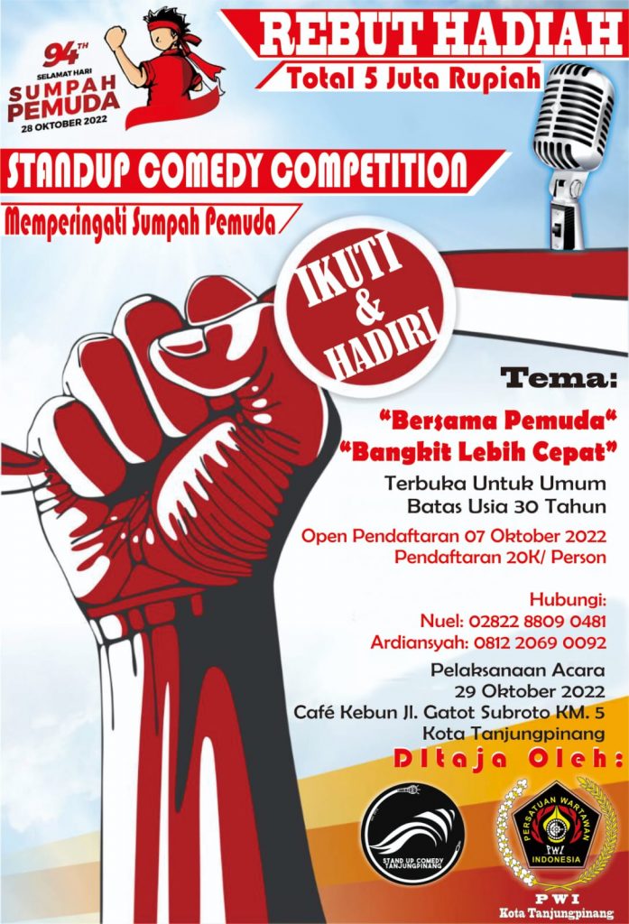 Peringati Hari Sumpah Pemuda, PWI Kota Tanjungpinang Gelar Lomba Stand Up Comedy dan Daftar di Sini